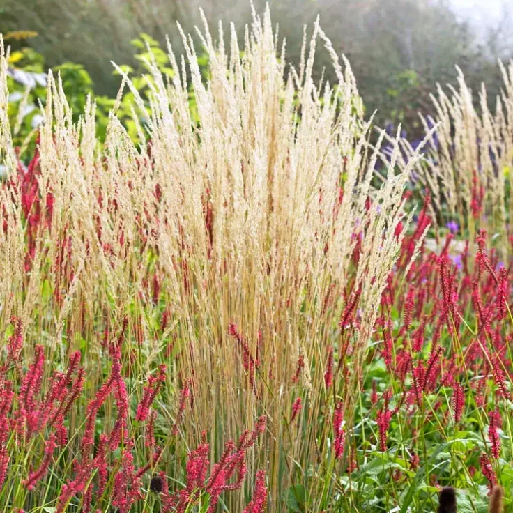 Calamagrostis x acutiflora Karl Foerster este una dintre cele mai iubite si premiate ierburi ornamentale din lume, datorita aspectului sau perfect vertical, elegant si architectural. Formeaza tufe inguste, ordonate, cu o silueta clar definita, iar spicele sale infloresc devreme în sezon si raman spectaculoase pana iarna tarziu. Culoarea lor se transforma treptat, de la verde proaspat la auriu-cupru, creand o dinamica splendida in gradina. Este una dintre putinele ierburi perfect verticale care nu isi pierde forma frumoasa si nu este culcata la pamant de nicio ploaie sau zapada, aducand luminozitate si stabilitate in orice concept – de la gradini moderne la cele rustice sau naturale.