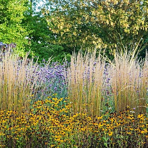 Se asociaza superb cu Echinacea, Nepeta, Gaura, Verbena bonariensis, Salvia sau Achillea, precum și cu alte graminee precum Panicum sau Miscanthus. Intretinerea este minima: o tundere completa la final de iarna, inainte de aparitia ghioceilor.