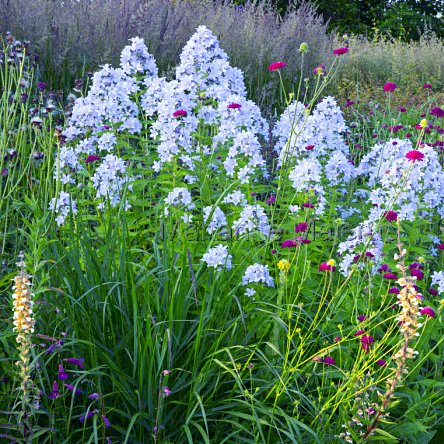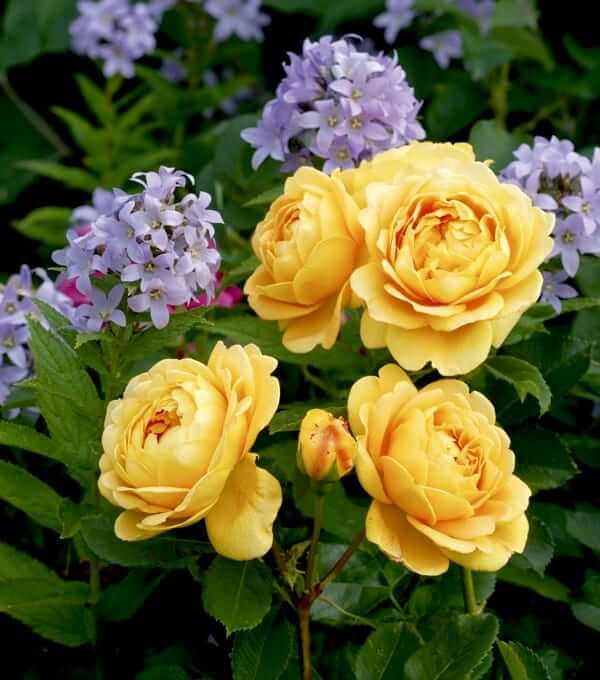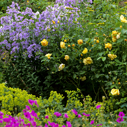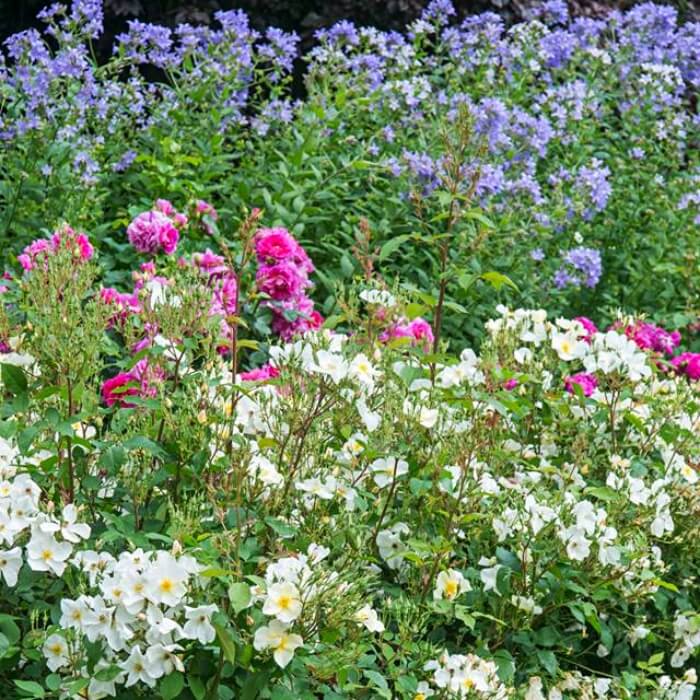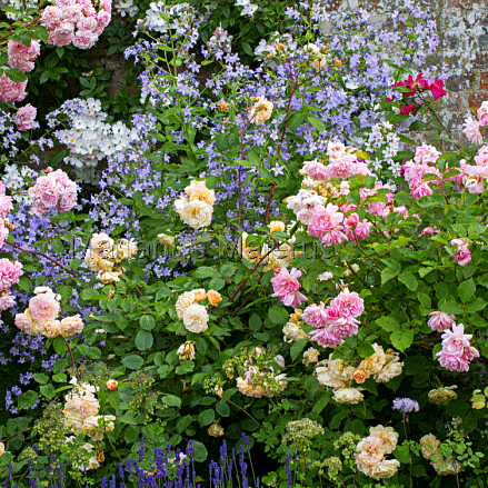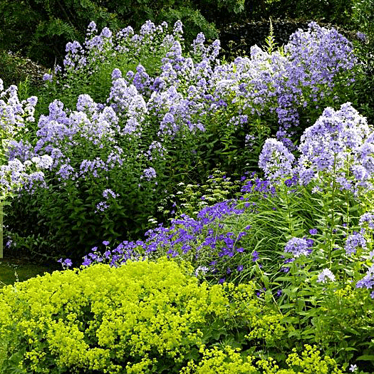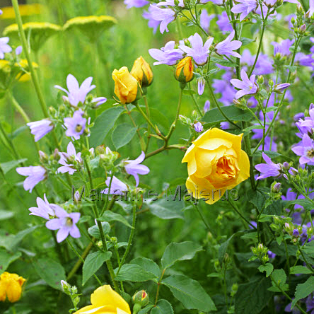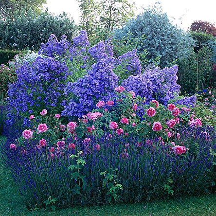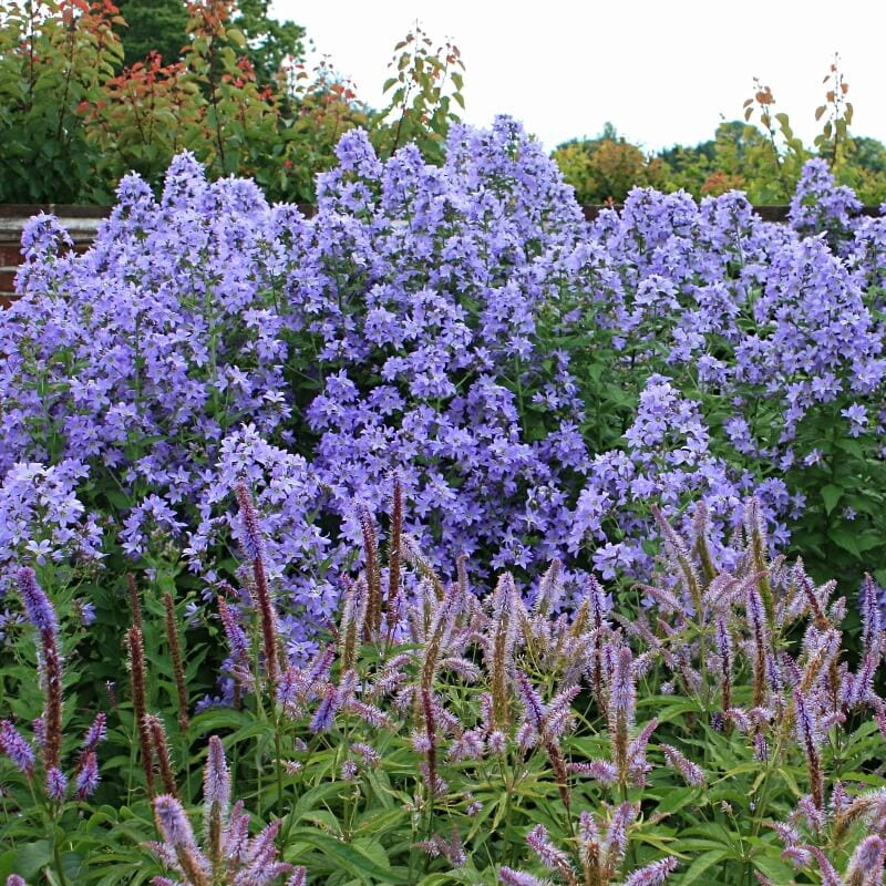 Florile bleu-violet are Campanulei lactiflora Prichards Variety arata minunat alaturi de trandafiri galbeni, roz, visinii si albi, impreuna cu plante perene ciclamen si mov!