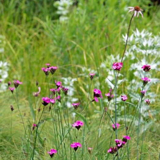 Perena, frumoasa si rezistenta, Dianthus carthusianorum este o garofita inalta, cu tije florale de 50-60cm inaltime, care infloreste neobosit, din primavara si pana in toamna.
