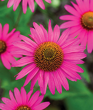 O echinacea cu floare mare si rotunda, intr-o nuanta luminoasa de roz, calda si vizibila, la mare pretuire in gradina in perioada calduroasa a verii, cand infloreste neobosit de la sfarsitul lunii iunie si pana in septembrie.