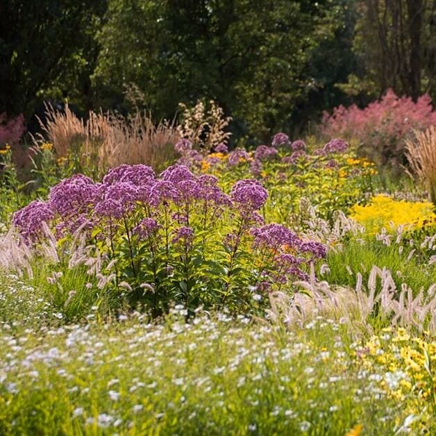 Plantati intre perene si arbusti de talie mica si medie, caci eupatorium se descurca sa iasa dintre ele cu mare gratie, in preajma trandafirilor, a ierburilor decorative, a hortensiilor albe, a rudbeckiilor, kalimerisului, a echinaceelor si geraniumului.