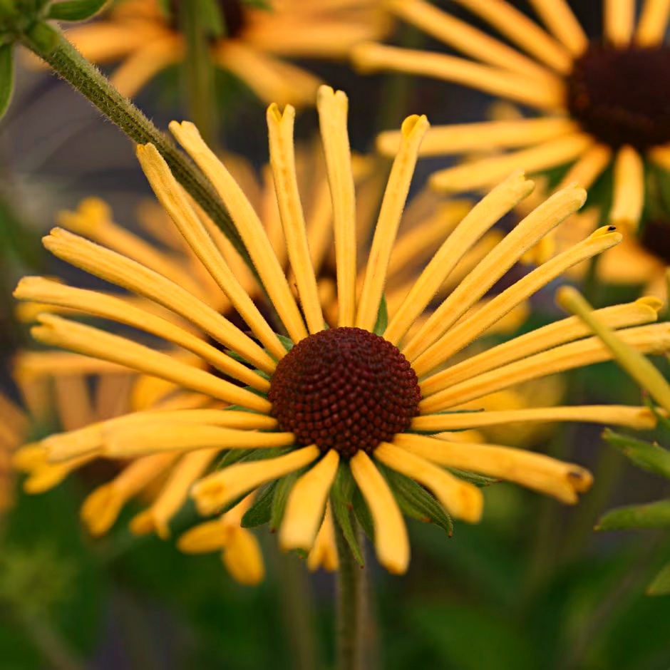 Rudbeckia subtomentosa Heny Eilers este o planta perena viguroasa si harnica, de mare nadejde, o frumusete inalta cu flori filigranate care apar cu zecile incepand din iulie, tinand gradina inflorita pana la venirea frigului.
