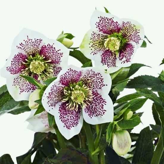 Helleborus orientallis Spring Promise Conny este un spanz spectaculos si rezistent cu flori albe si multi pistrui mauve, o bijuterie de vreme racoroasa cu aspect luminos si elegant, perfect printre alte plante obisnuite de primavara!