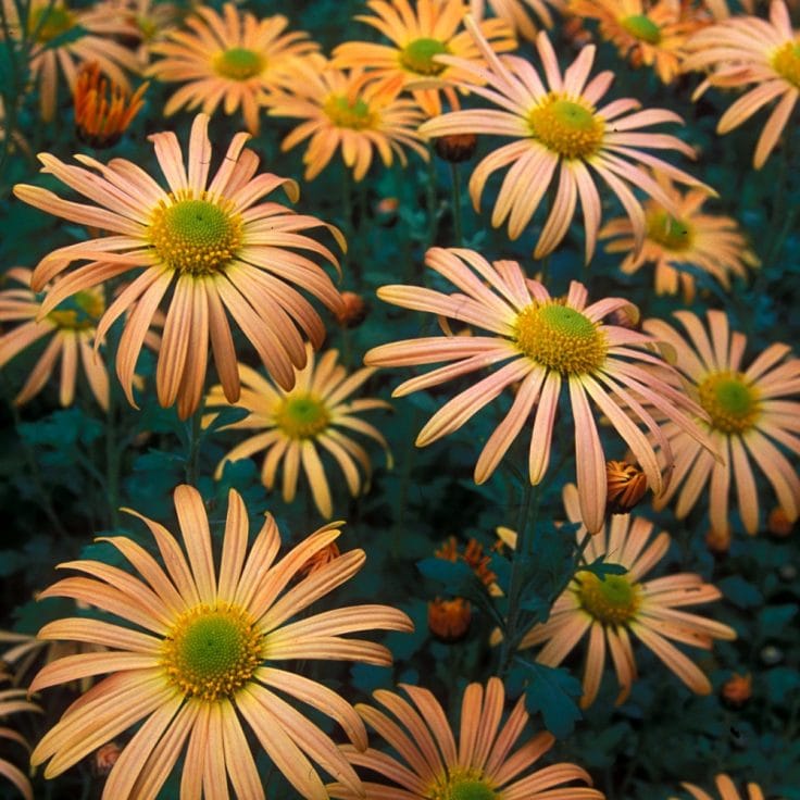 Mary Stoker este o crizantema perena si ea, cu inflorire timpurie, de la sfarsitul lui septembrie, cu dezvoltare ramificata si productie abundenta de flori mari, colorate intr-o nuanta calda de caisa, usor spre roz.