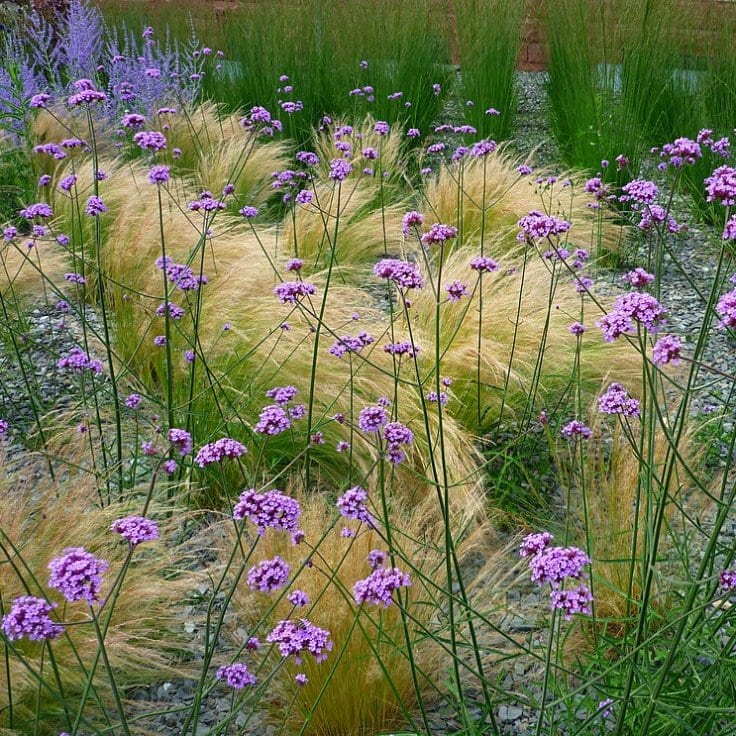 Verbena se potriveste natural cu Artemisa argintie, cu ierburi decorative precum Stipa, cu Euphorbia albastruie wulfenii, si, daca vreti ceva deosebit, cu Gaura Whirling Butterflies si Rudbeckiile solare!