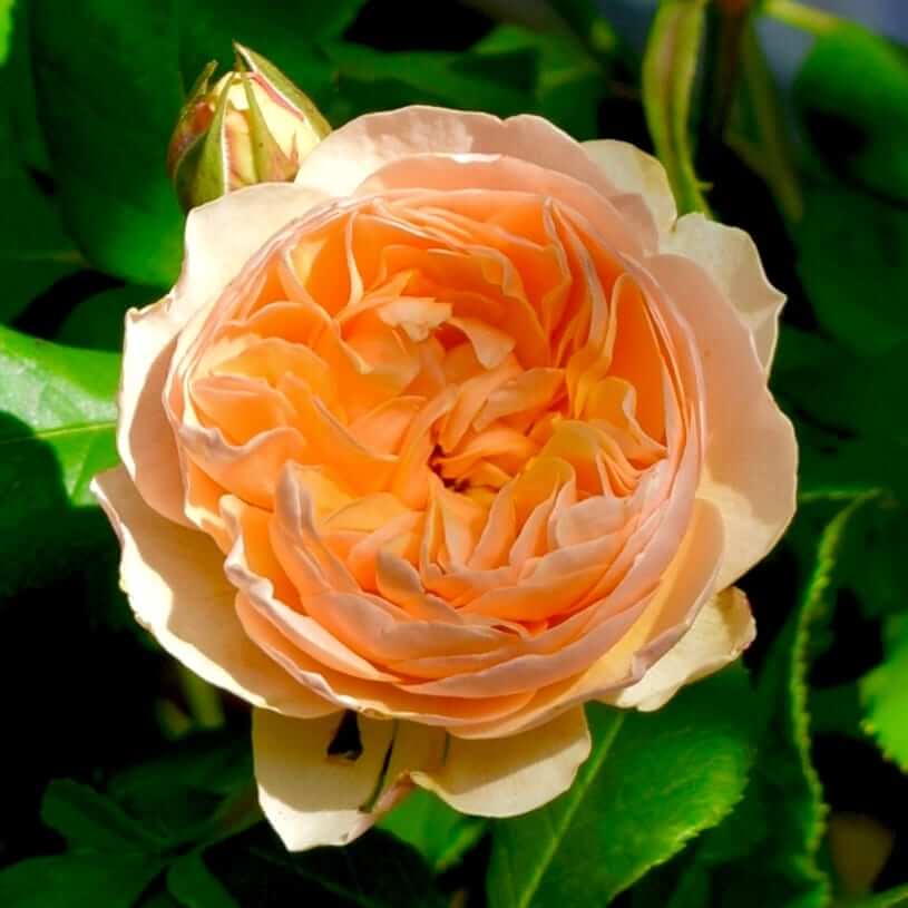 Intr-o nuanta absolut superba, stralucitoare, de un caisiu pur, florile lui Roald Dahl de deschis rotunde, pline si batute, pe o tufa rotunda, de inaltime moderata, densa si foarte bogat ramificata.