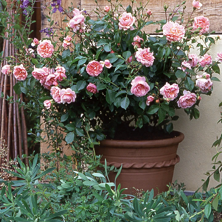 Ca si combinatii, va recomandam sa-l asortati cu plante perene mov, arbusti cu frunzis decorativ roscat si trandafiri albi ori crem (Desdemona, Tranquility, roz somon precum Boscobel, roz intens precum Gabriel Oak, ori cu nuante calde de galben pal, roz piersica si caisa ( Eustacia Vye, Bathsheba).